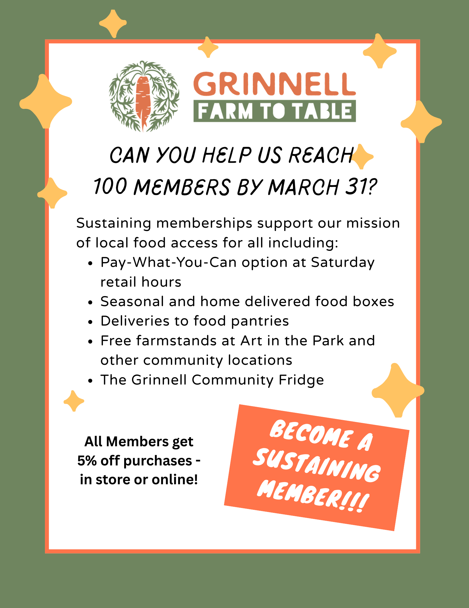 We are also open in-person every Saturday from 1 -5 pm at 1032 Main St. in Grinnell